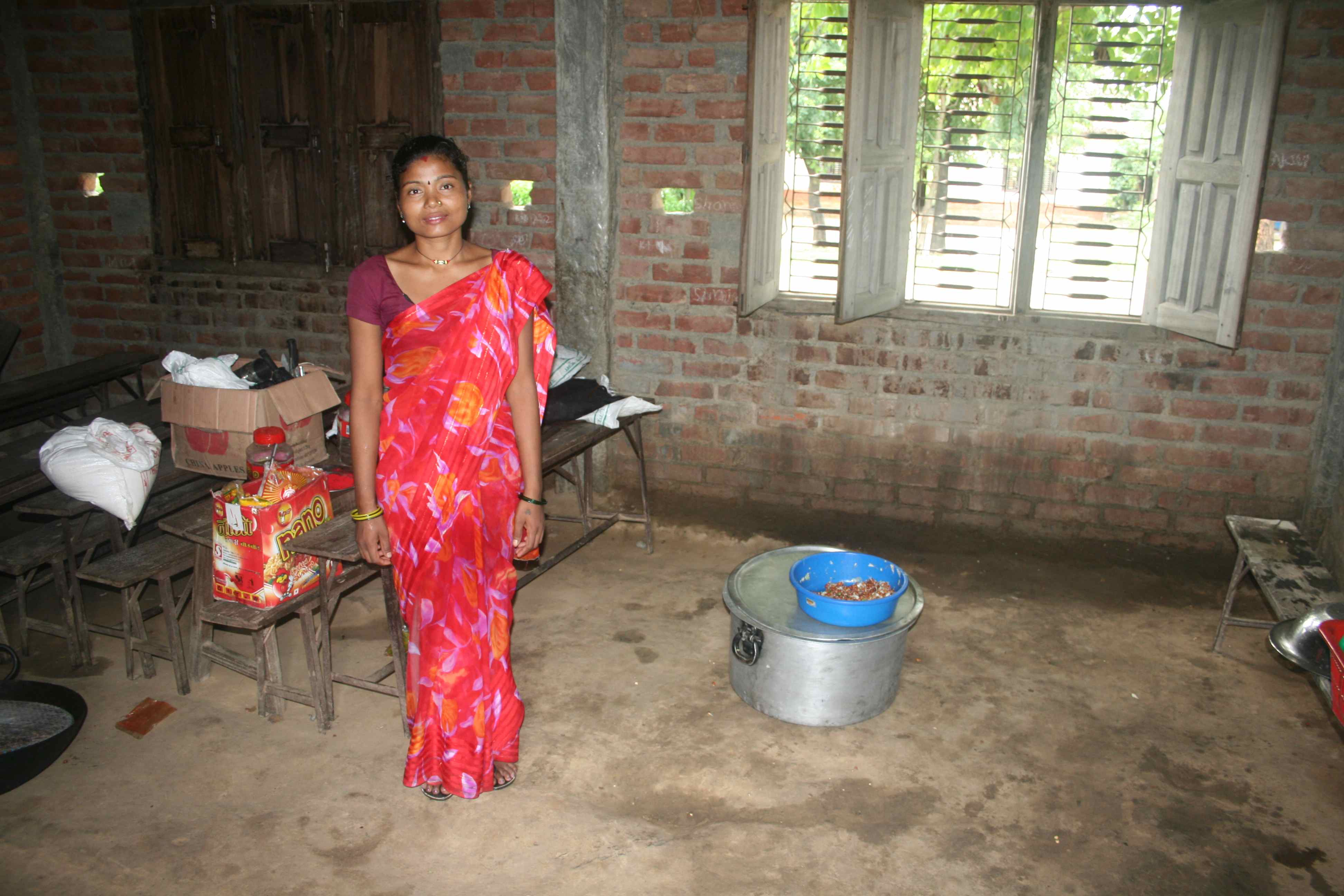 Shree Laxmi havde fået ansat en lokal kvinde til at købe ind og koordinere maden og Bishaka, der er skoleleder sagde, at en del mødre kommer og hjælper til. Den dag jeg var på besøg, fik ungerne kikærtespirer med løg og hvidkål. Rigtig sundt men ikke særlig smagfuldt. Madkoordinatoren sagde også, at ungerne ikke brød sig om hendes “Kichadi” en blanding af ris, linser og grøntsager. Så jeg har foreslået at hun kommer på kursus på madskole 1, hvor Raju laver en rigtig god Kichadi.