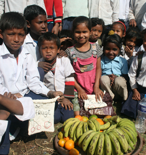 Frugtposer til danske børn og mad til nepalesiske børn