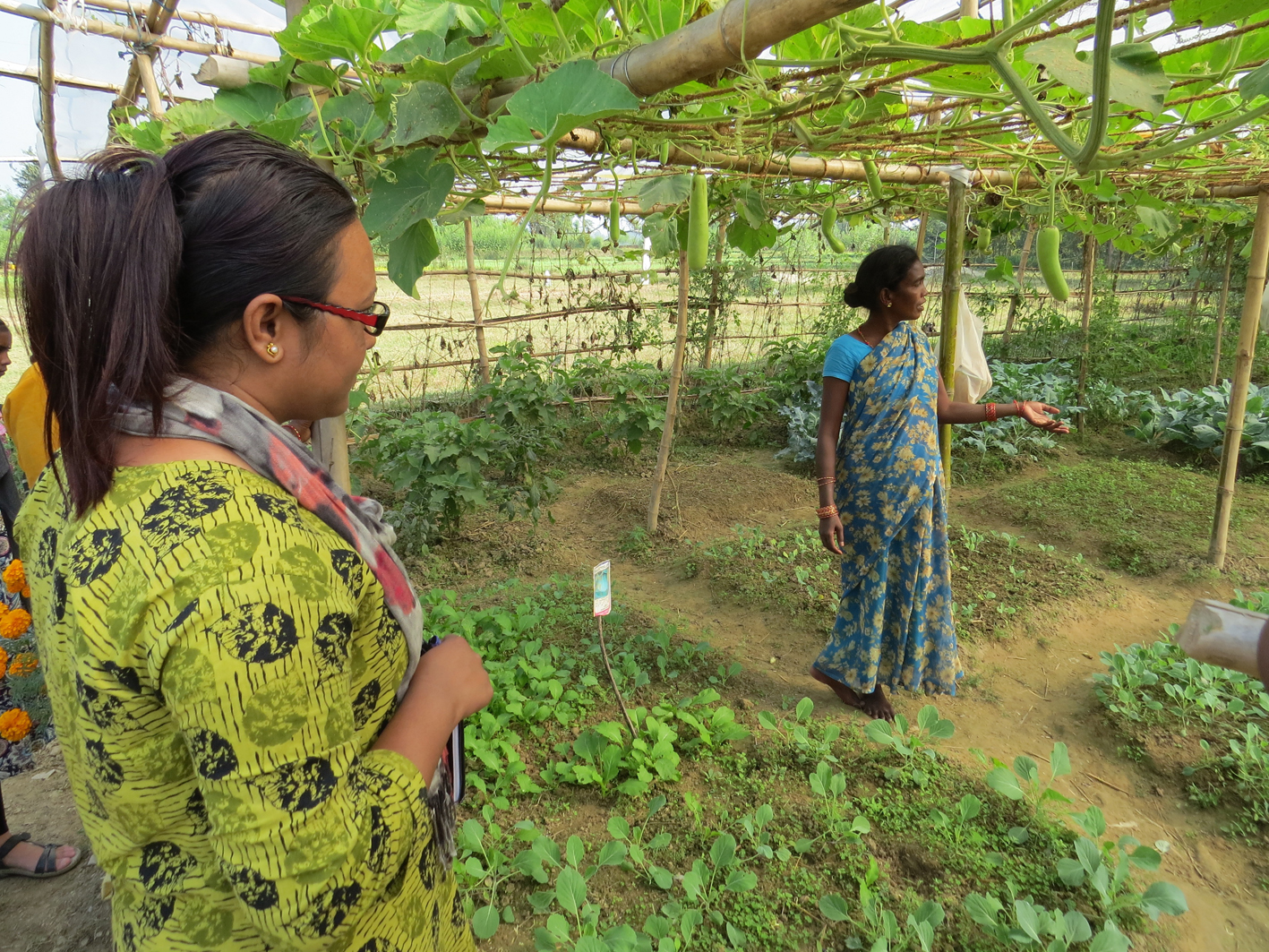 Holdet, der hver dag drog fra hotellet til landsbyen i Nepals mest larmende og skramlende jeep. Bilen kørte kun til høj musik. I midten Lis Rasmussen og tolken Sukumaya. Til højre: Jeepens stolte ejer mr. Krishna Paudel, Anne Mette Nordfalk og projektleder Menuka Neupane. Til højre praktikant Gitte Thorup og journalist på radio Kantipur Prajwal Khadka.Aarati og Laxmi i gang med at binde tomater op. Lis Rasmussen synes generelt haven var flot. Men der var også masser at gå i gang med. Kvinderne har lært at lave kompost, at sætte grøntsager i lige rækker (og ikke her og der:), at man komme kompost på efter man har plantet, og at man ikke behøver bruge gift til at sprøjte mod insekter.Lis Rasmussen medlem af foreningen og frivillig konsulent og ekspert i biodynamik, foran det flotte drivhus, som damerne har lavet på et af de kurser, de har været igennem. Lis havde fire dage i Soiya, hvor hun sammen med damerne gennemgik, hvad de har lært og fik styr på noget af det, som trængte. Blandt andet har det været en kamp at bekæmpe skadedyr uden kemikalier. Særligt auberginerne trængte til en gang økologisk sæbe. Der var også nogle udfordringer med hvordan man vander rigtigt. Blandt andet fordi vores pumpe driller.Da undertegnede ankom lavede vi en fælles evaluering. Kvinderne blev delt i grupper og blev bedt om at tegne, hvad de synes havde været hhv. godt og skidt. Hvad de havde lært, og hvad de gerne ville lære fremadrettet.Det var ikke så nemt, det der med at tegne. Bare fordi man ikke kan skrive, så er man altså heller ikke den store tegnekunstner. Men det gik, med mange opmuntringer. Og da plancherne skulle præsenteres, var det en stor fordel med tegninger, som kunne hjælpe grupperne igennem. Alle skrev, at de havde lært meget om at dyrke grøntsager økologisk og at plante i rækker, lave kompost og at samarbejde i en gruppe. Alle ville gerne lære mere. Det som ikke havde været rart, var fx. insekter i grøntsagerne og det at lejekontrakten til jorden kun er på fem år.En af de ting kvinderne fra Soiya nævnte, som en stor forandring i deres liv, er, at de er blevet åbne overfor fremmede. Her er Sabitri (forkvinde), Asha (ansat i læringcentret) og Maya (menigt medlem) i snak med Prajwal Khadka fra Radio Kantipur. “Før var vi bange for fremmede,” sagde de. Jo tak, det kan jeg godt huske!En af de dage Lis Rasmussen var i Soiya, besøgte vi Shree Laxmi primary school, der er med i skolemadsprojektet. Deres køkkenhave så meget fin ud (lidt svært at se på afstand), og vi blev enige med skolens leder Bishaka Rana om, at det er tid til at udvide den. Så efter vi tog afsted er der pløjet et nyt stykke jord. Soiya Women’s praktikant Gitte Thorup har også brugt nogle dage på skolen på at finde frem til, hvor mange have-grøntsager, der nøjagtigt bruges i maden – og det er slet ikke nok. Derfor skal køkkendamen nu til at øge mængden af grøntsager.Kvinderne fra Soiya var også med på Shree Laxmi school. Her hjælper de havemanden med at binde tomater op. De skal også være med til at bygge et ordentligt drivhus på skolen, så får de også øver sig!En af de ting, som hverken kvinderne i Soiya eller havemanden på Laxmi school helt havde forstået var princippet om rotation. Altså at grøntsagerne hver gang skal skifte plads. På den måde forhindres sygdom. Her forklarer Lis Rasmussen og laver en rotationsplan til Laxmi Schools have.