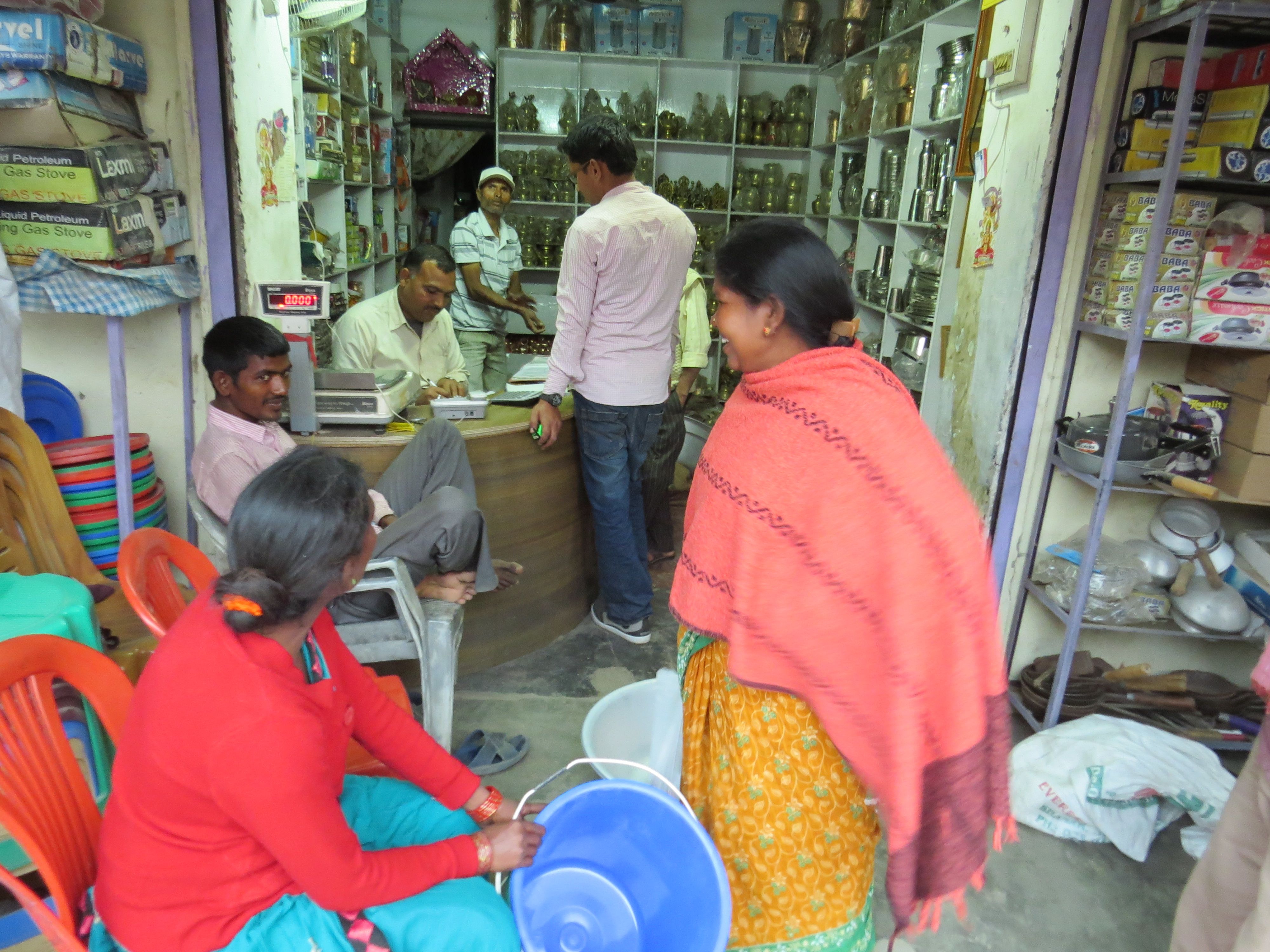 Bagefter var vi henne og købe nogle store metalkasser til Laxmi schools køkken. Soiyakvinderne fandt også en del andre ting, som de manglede. Virkelig rart at se dem tage intiativ, især fordi det jo ikke var til fordel for dem selv.