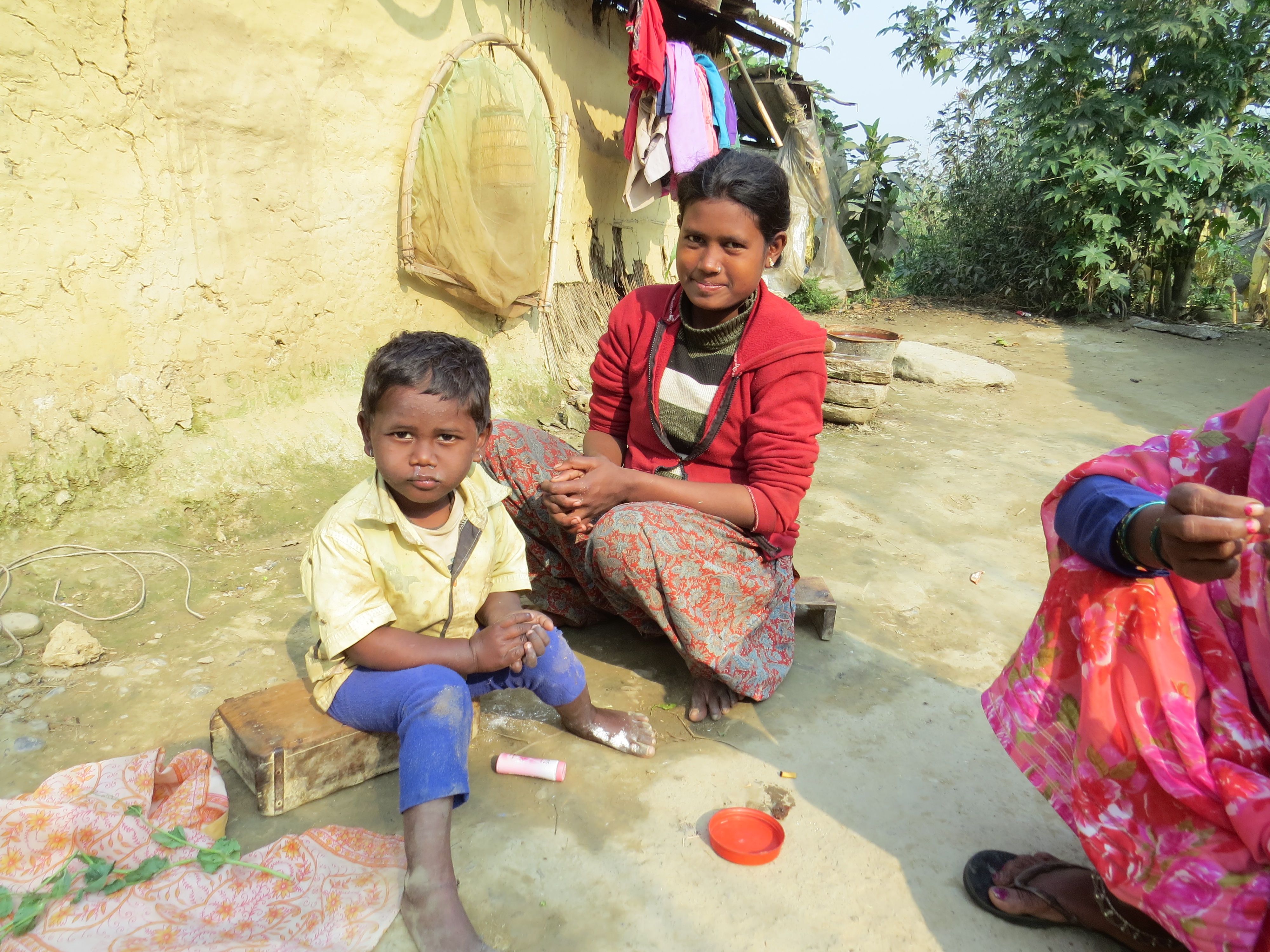 En gruppe, som vi lige nu har lidt svært ved at aktivere, er mødre med helt små børn. Nirmala (her med sin ældste søn) er en af dem. Dengang kvinderne syede, var det lettere at have babyer med, i haven duer det ikke rigtigt.