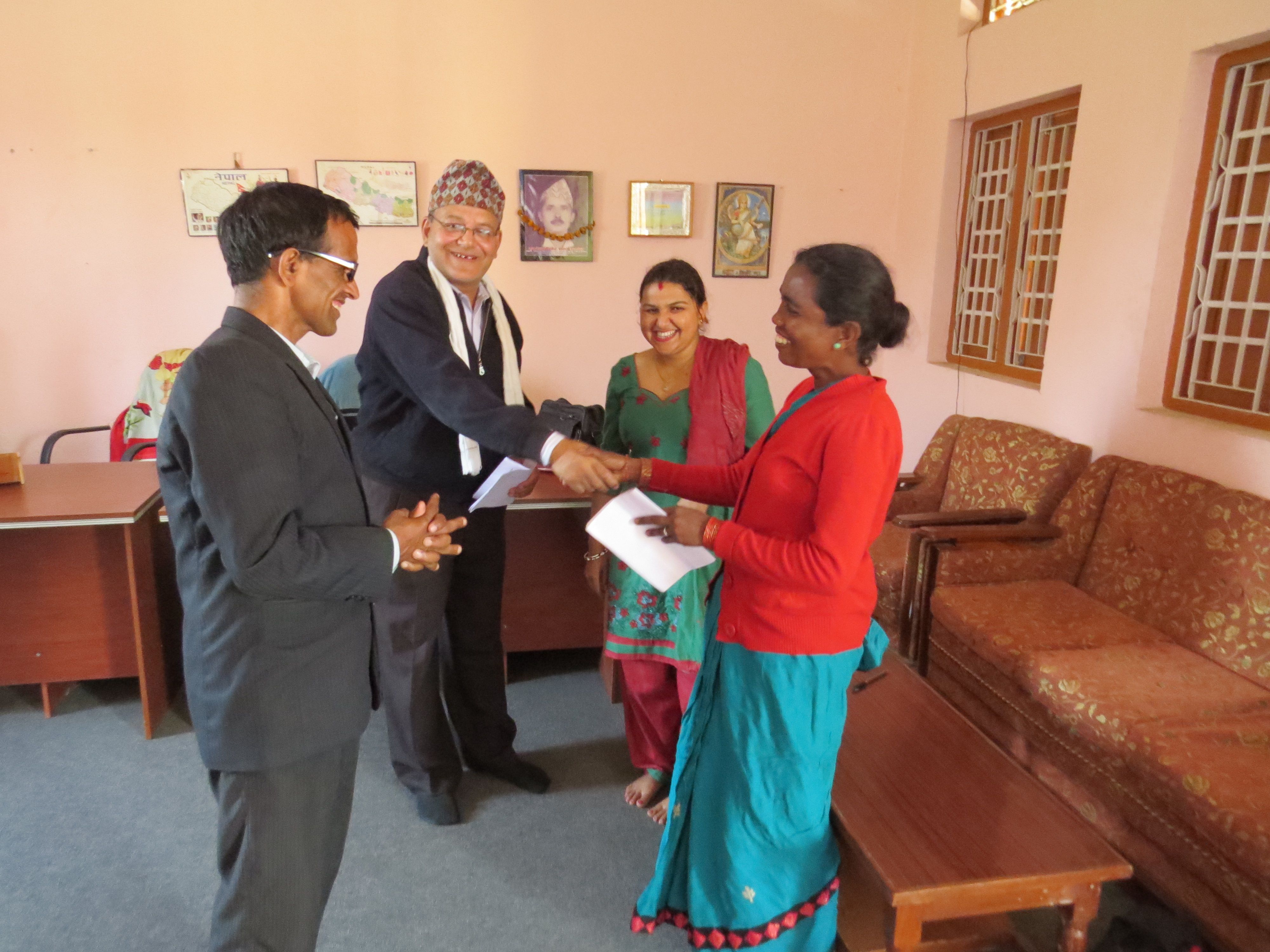 Sabitri Musahar (forkvinde) og Menuka Neupane (daglig leder af Soiya Women) samt Dinananth Aryal og skolens bestyrelsesformand skrev under på kontrakten for det fremtidige samarbejde.