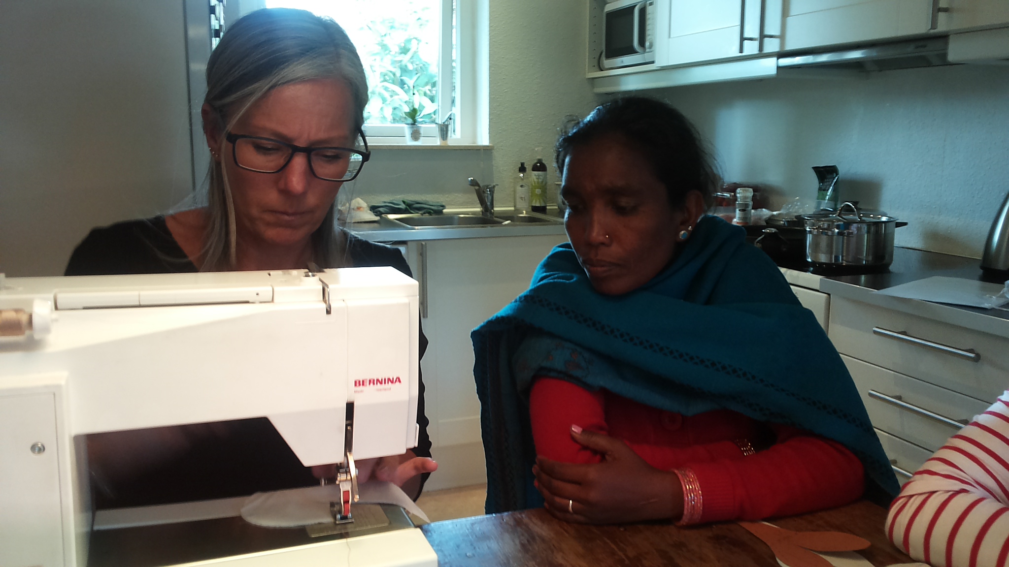 Om aftenen var vi til middag hos Camilla fra Skolelivs bestyrelse. Camilla har lavet skabeloner til de æsler, som damerne i Nepal har syet til Søbogaard. Der var to modeller, og den ene kunne vi simpelthen ikke få til at fungere, så det skulle Sabitri og Camilla lige have kikket på.