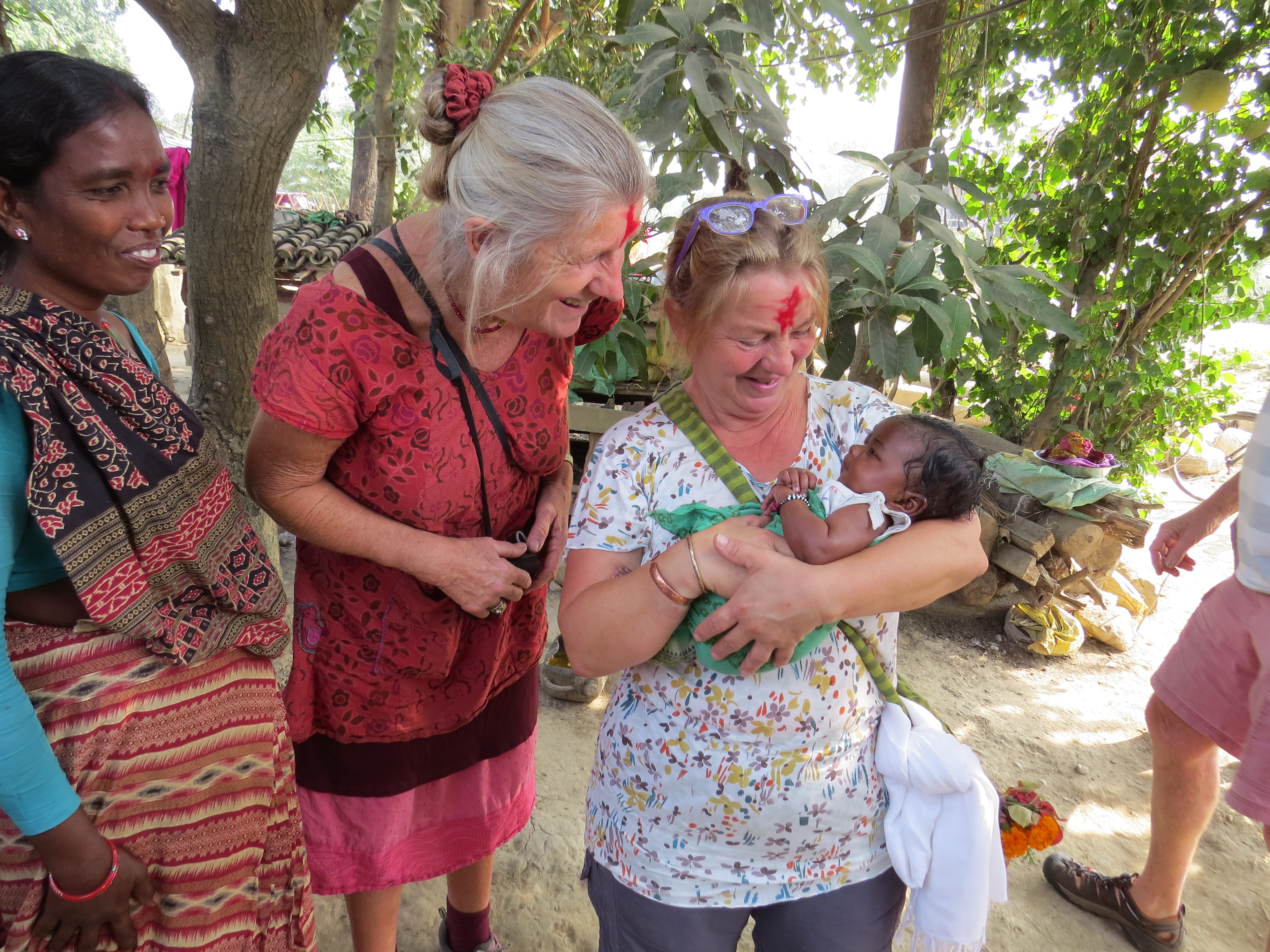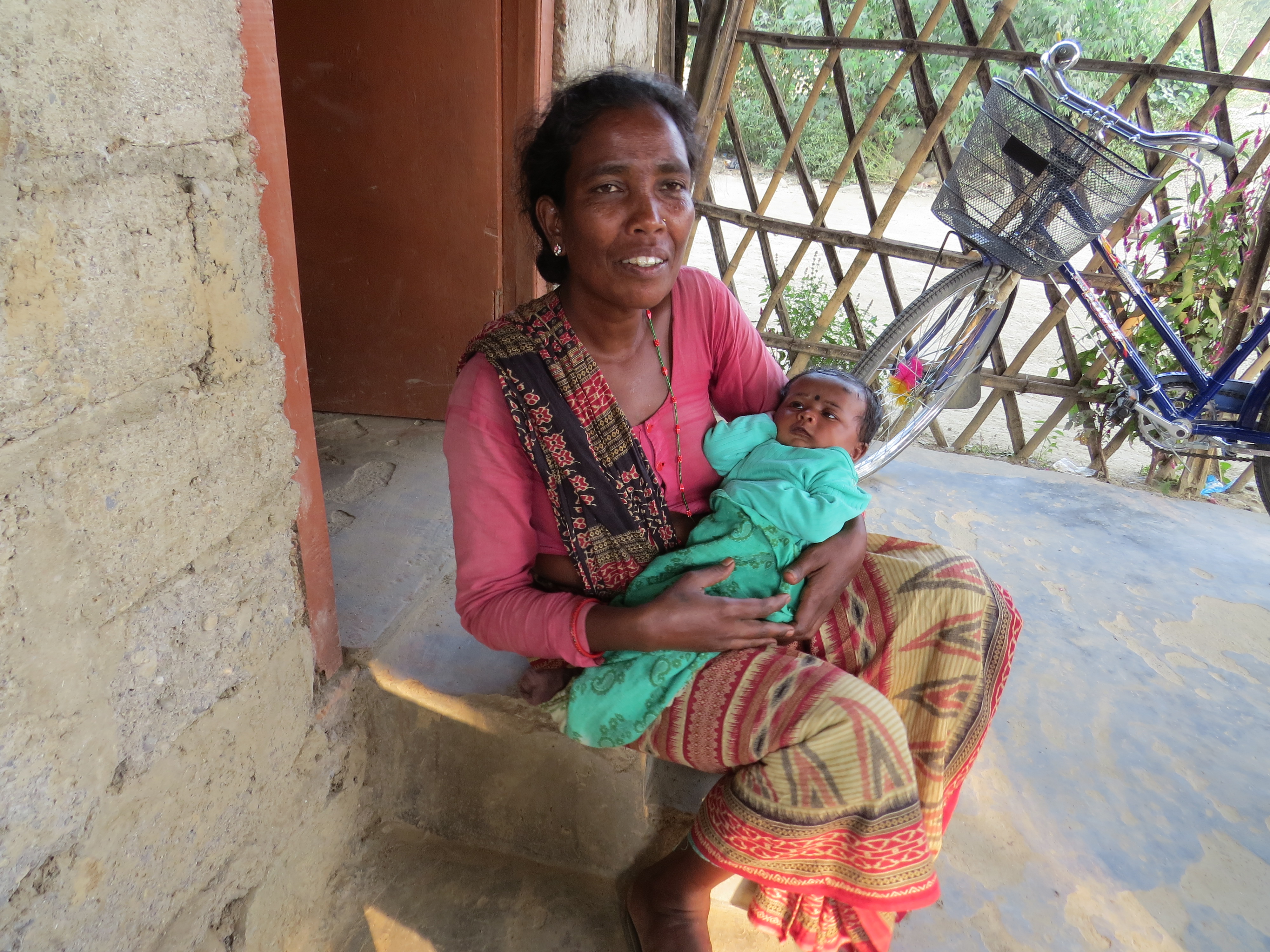 Herunder: En stolt mormor. Sabitri med sin datter Aratis første barn. Desværre holder den lille mus hele familien vågen om natten, så de var lidt trætte. Lige nu bor familien far, mor, tre store drenge+datter og svigersøn i to rum, så det er ret trangt.