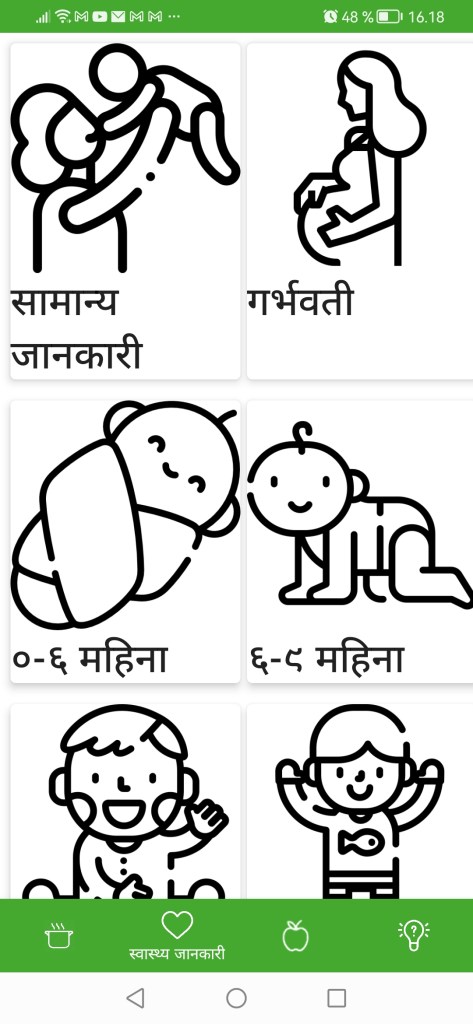 Kvinderne i Soiya Mahila Swabalambi Sanstha synes det var fedt at lære om, og de har senest selv videregivet den vigtige viden til ca. 800 nye kvinder. Men hvad er det så med den app? Jo, udover at holde kurser i sundhed, så har vi i Skoleliv i Nepal haft en drøm om, at bruge smartphones til at formidle information om sundhed. I Nepal får flere og flere en billig kinesisk smartphone og flere og flere har adgang til internettet, så det er oplagt at kigge i den retning, når man vil sprede information. Selvfølgelig ikke i stedet for NPCS’ fede kurser, men som supplement til brochurer. For eksempel har den lokale health post sjældent den slags brochurer, men må forlade sig på, at gravide og småbørnsmødre kan huske de gode råd de får. En app kan uddeles gratis og kan desuden opdateres uden de store omkostninger.