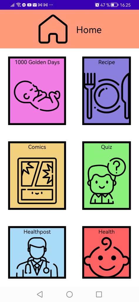 Sammen med en projektansvarlig i Nepal, 4 testgrupper af kvinder med små børn og NPCS gik vi i gang med app’en. Undervejs kom en nepalesisk illustrator til, men vi var også så heldige at kunne benytte en del illustrationer fra det store USAID projekt Suahara, som netop retter sig mod de 1000 første dage.