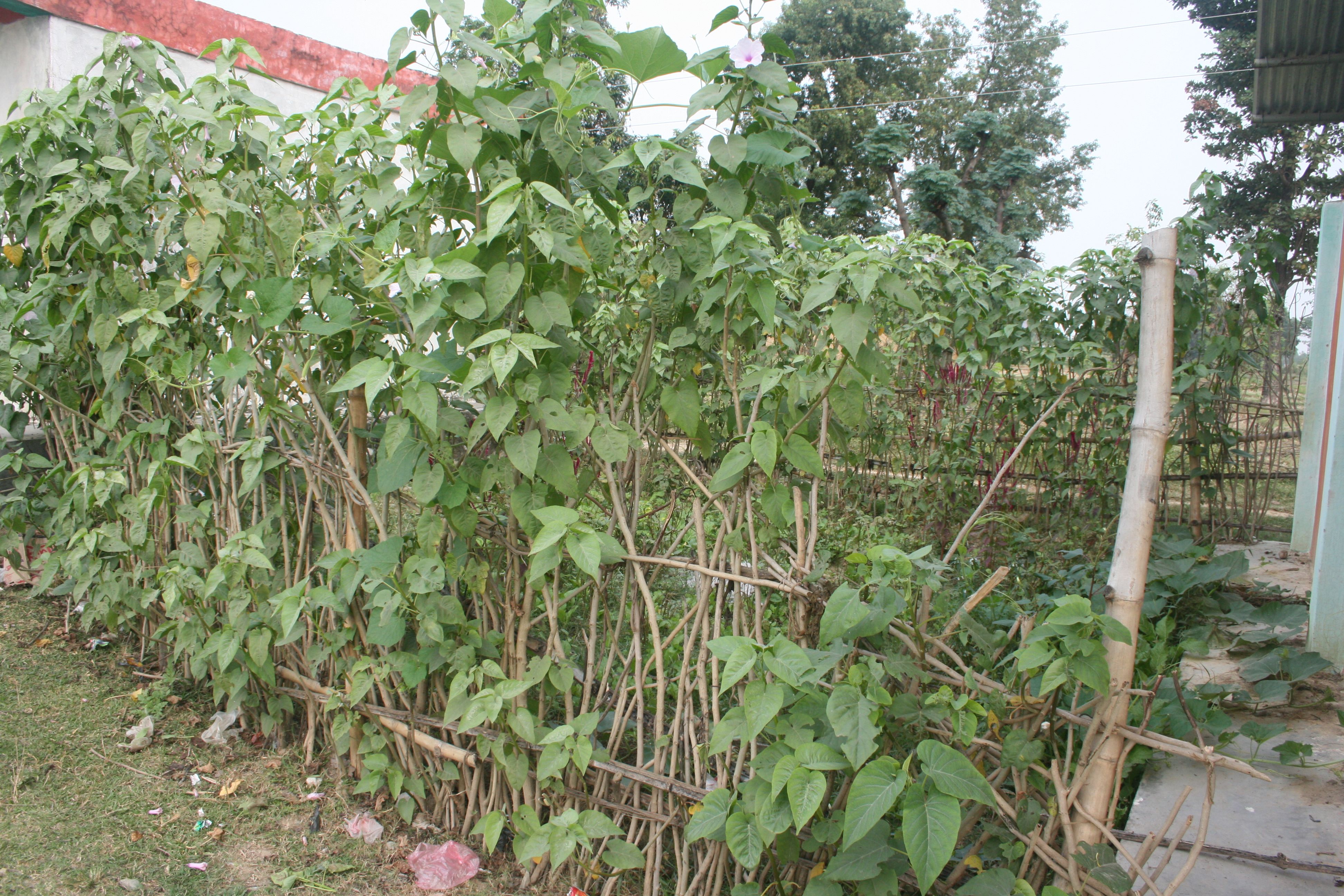 Raju viser os stolt køkkenhaven, den er altid fin! Denne gang er der plantet snorlige rækker med kartofler. Haven var en del af skolens første lærertræning og Raju har holdt den fantastisk siden da. Tænk hvis de havde lavet kartofler i vertikale vækstkasser så ville der blive mange kartofler. Jeg krydser fingre for, at jeg finder en god underviser, som kan hjælpe med det projekt.