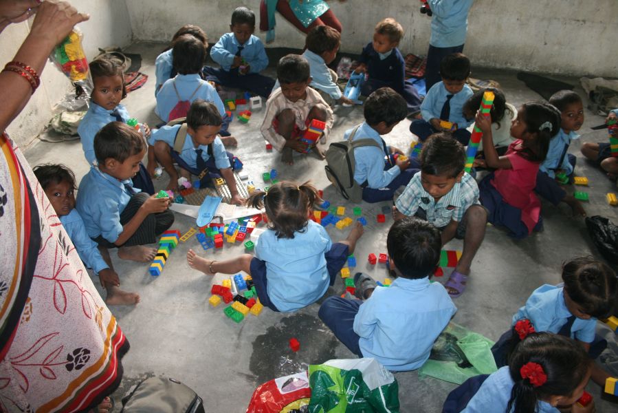 Efter mødet uddelte vi dublo-klodser doneret af Lego Charity. De ca. 30 børn i skolens børnehaveafdeling har intet legetøj overhovedet, så jeg har glædet mig meget til at lege lego-julemand.