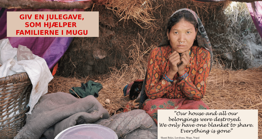 I oktober blev distriktet Mugu langt oppe i Himalaya ramt af voldsomme mudderskred. Flere landsbyer blev ødelagte og 332 familier blev hjemløse. De bor nu i midlertidige plastik “telte” med lidt hø i bunden. Mange har kun det tøj de står og gør i, et enkelt tæppe, en gryde og en enkelt sæk ris, som behjertede mennesker fra området har givet dem.