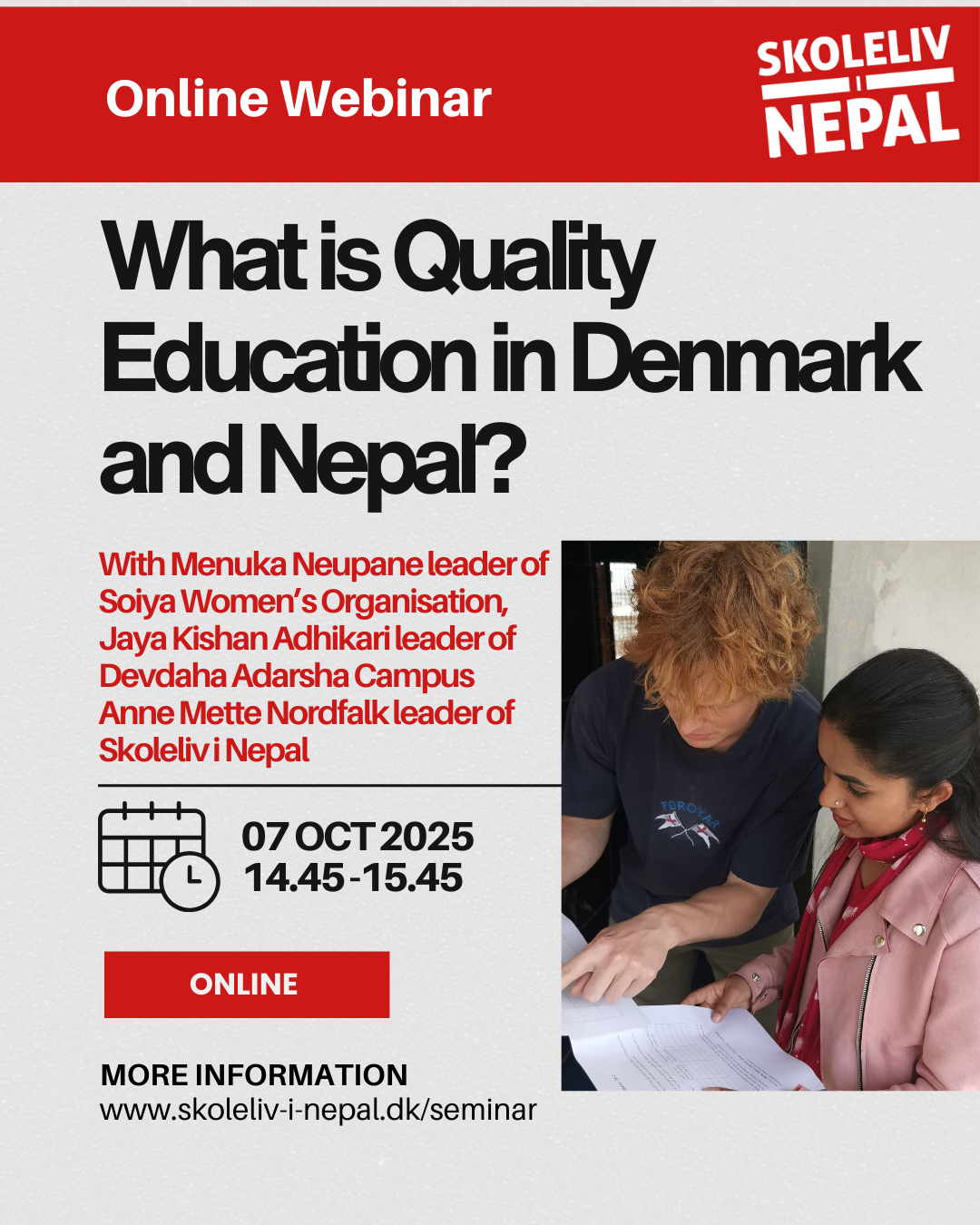 Skoleliv i Nepal, Soiya Women’s Independent Organization og Københavns Professionshøjskole inviterer til online seminar for alle, som arbejder med disse væsentlige spørgsmål.